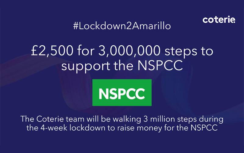 To keep themselves active during the second national lockdown and to support the amazing charity, the NSPCC, the Coterie team will be walking 3 million steps over 4 weeks in their Lockdown 2 Amarillo challenge.